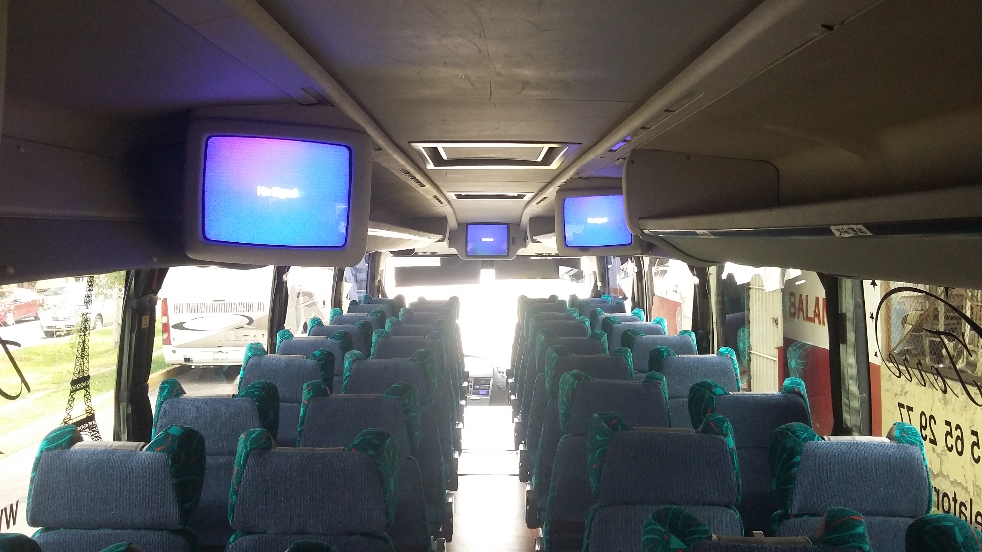 53 asientos reclinables con cinturones de seguridad - 4 pantallas - dvd - usb - estéreo - seguro de viajero - wc - aire acondicionado - calefacción - micrófono - luces de lectura - cajuelas - portaequipaje