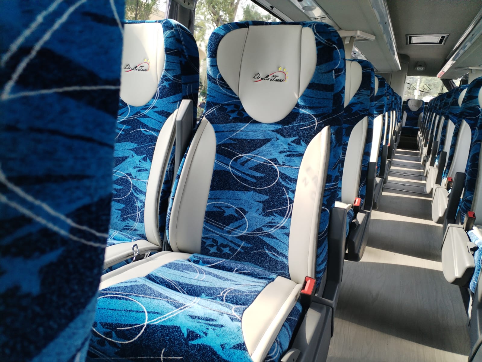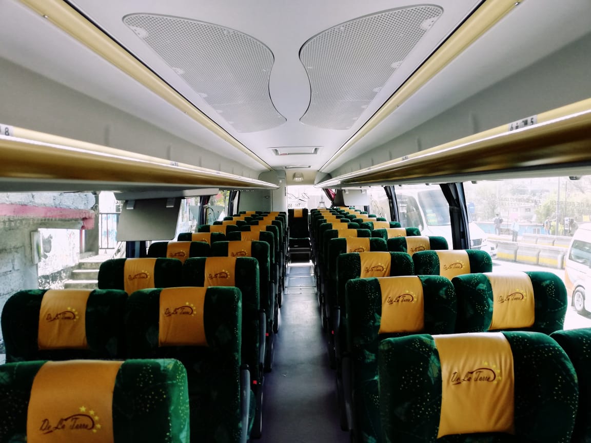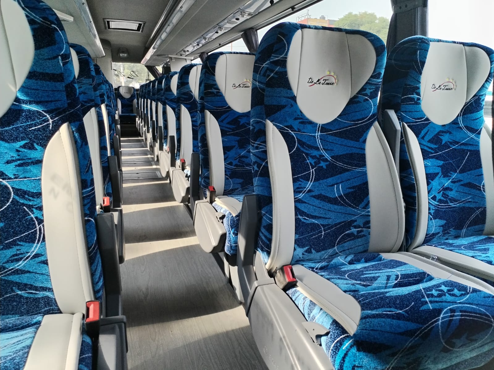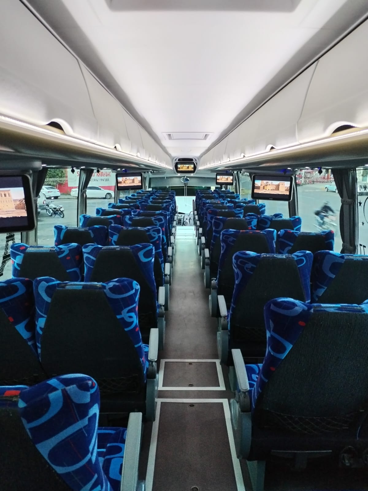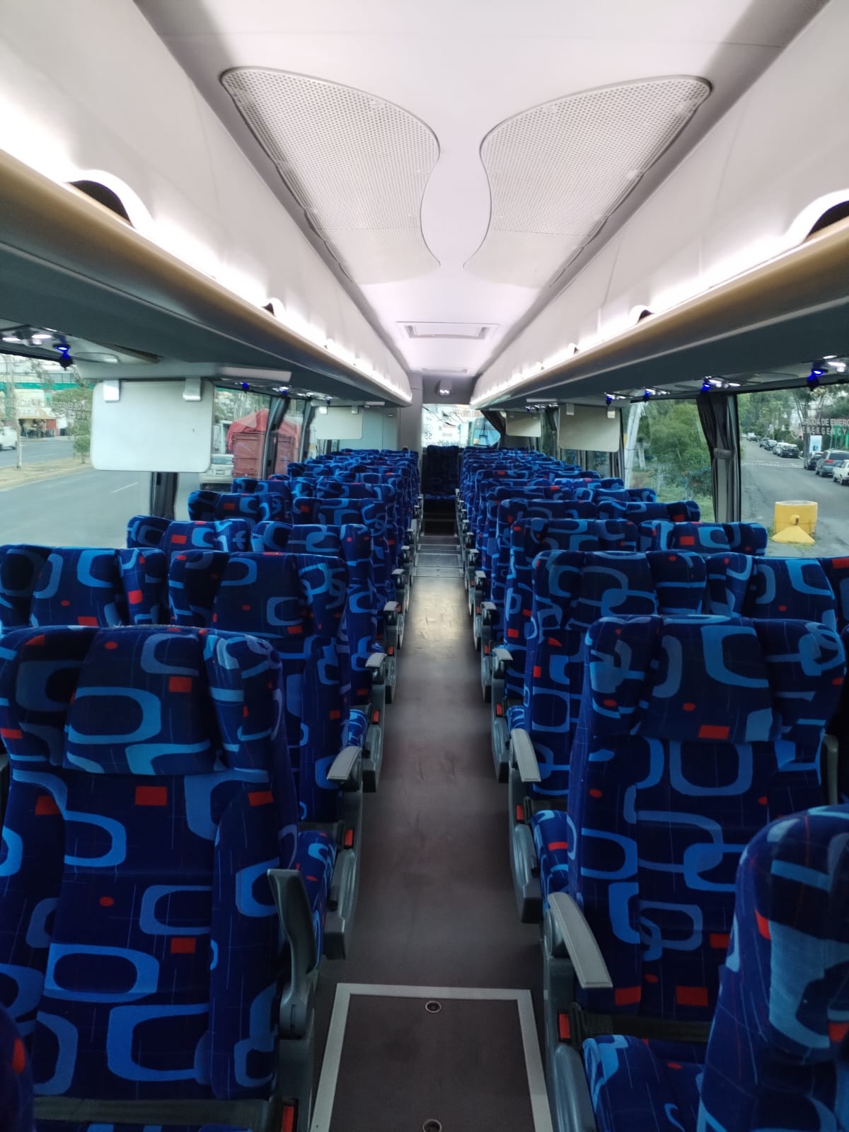 53 asientos reclinables con cinturones de seguridad - toma corriente en todos los asientos - 4 pantallas - dvd - usb - estéreo - seguro de viajero - wc - aire acondicionado - calefacción - micrófono - luces de lectura - cajuelas - portaequipaje