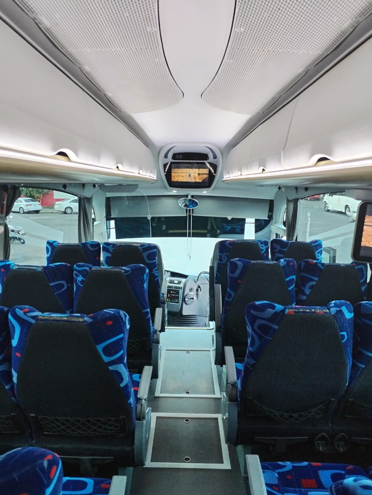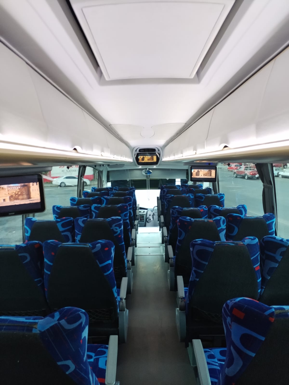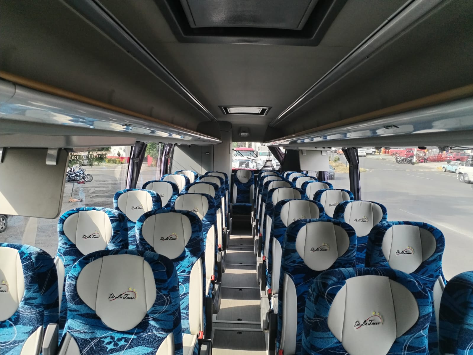 51 asientos reclinables con cinturones de seguridad - toma corriente en todos los asientos - 2 puertas - 5 pantallas - dvd - usb - estéreo - seguro de viajero - wc - aire acondicionado - calefacción - micrófono - luces de lectura - cajuelas - portaequipaje